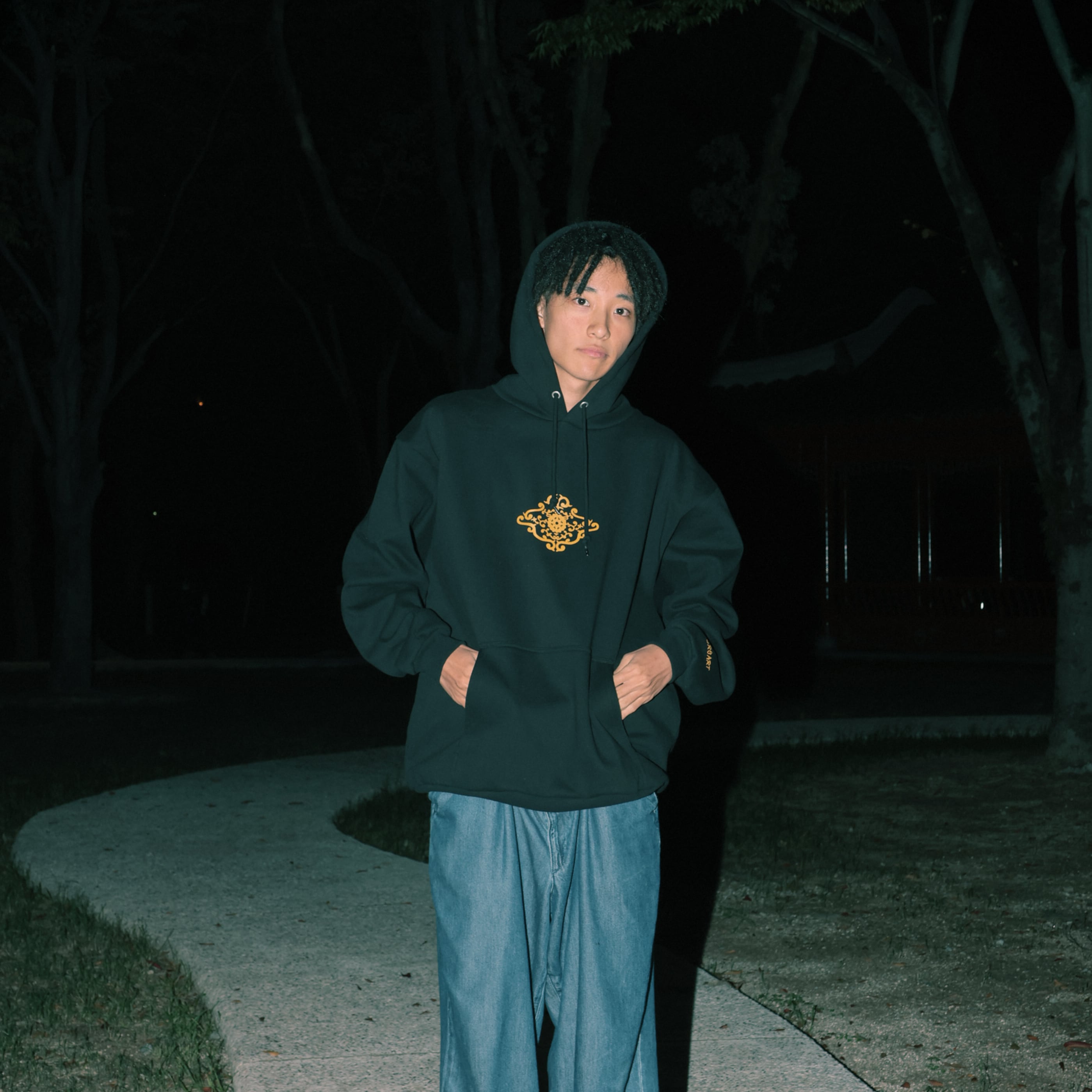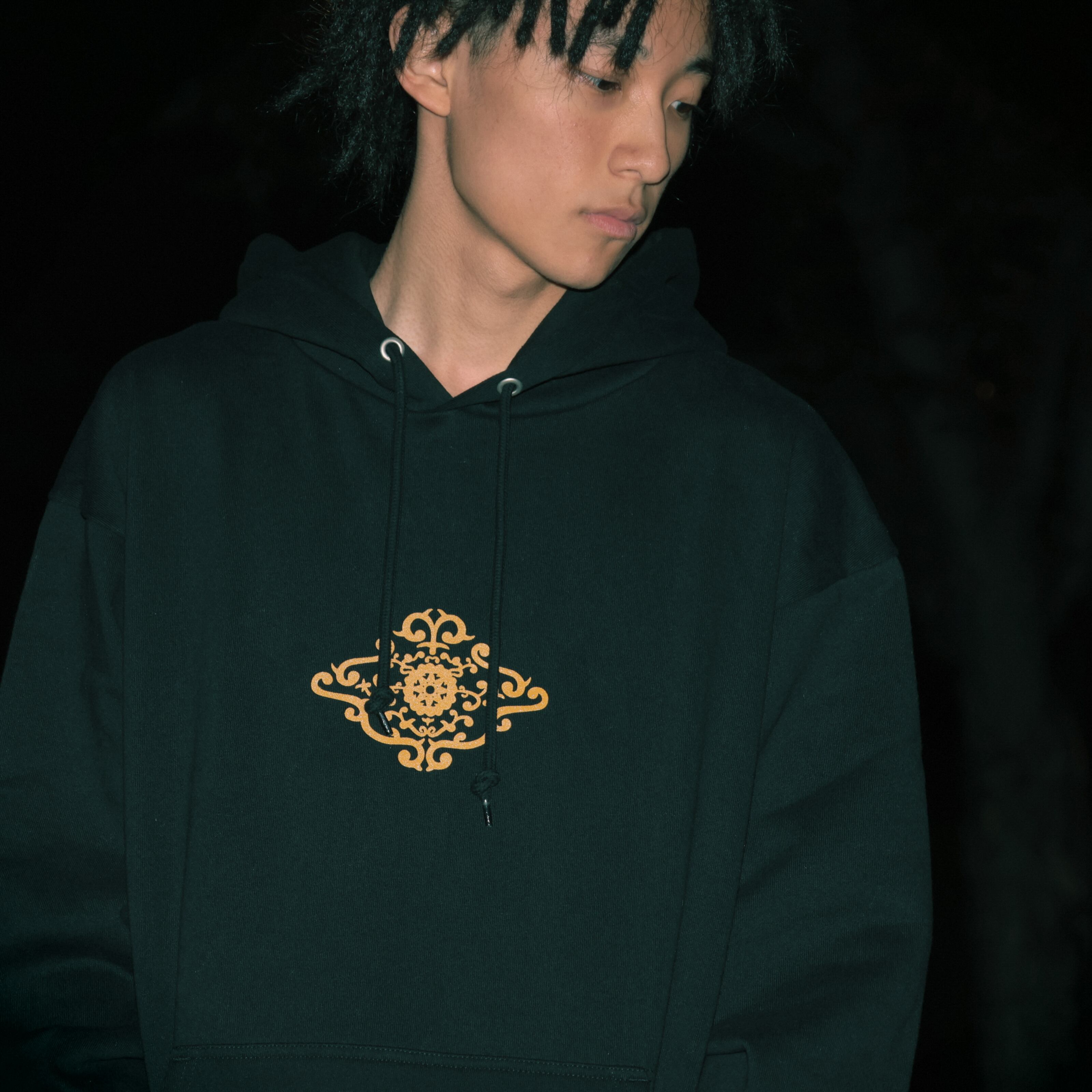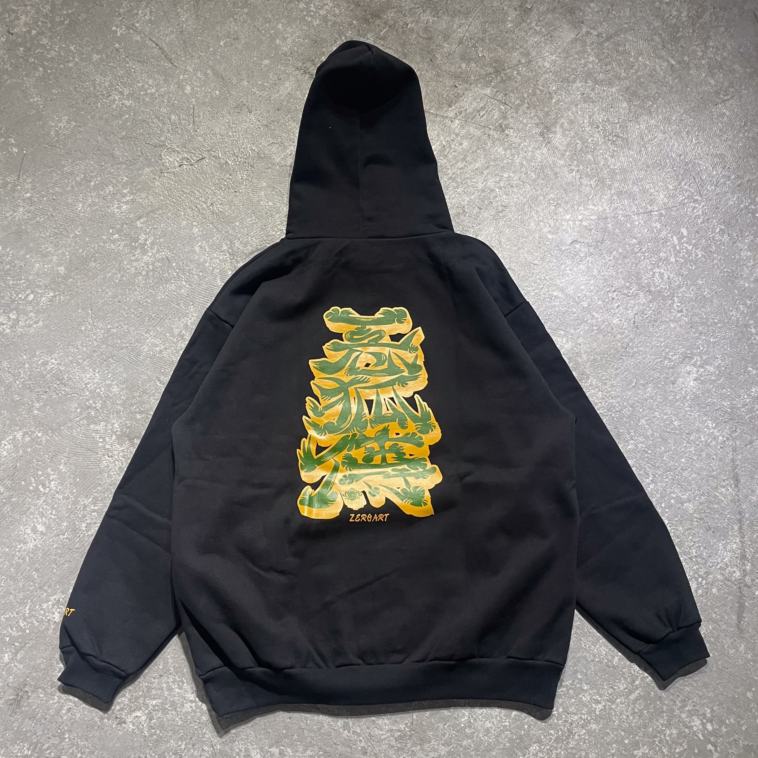 悪狐傳 ブラック 15.0オンス スウェット プルオーバー パーカ(裏起毛)